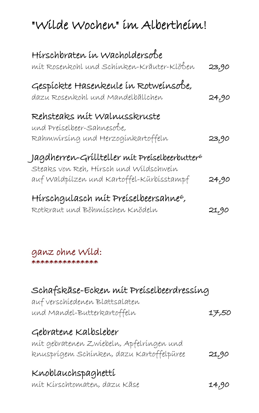 Unsere Speisekarte des Restaurant Albertheim in Freital-Pesterwitz, immer vielfältig und abwechslungsreich.