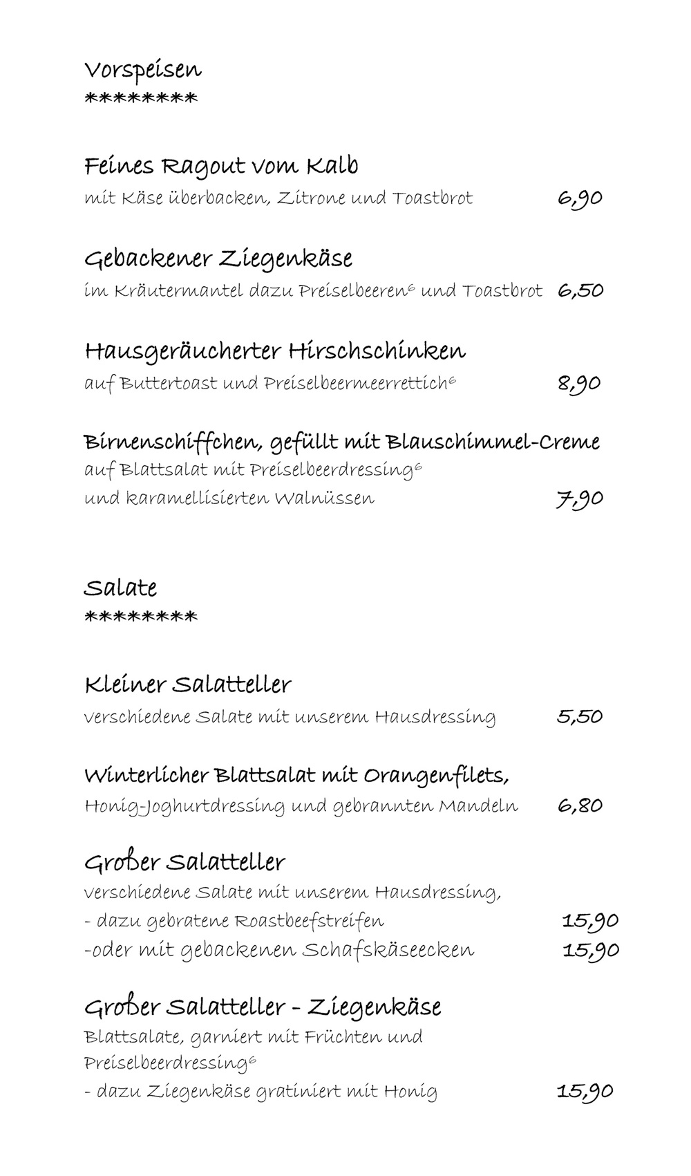 Unsere Speisekarten im Überblick